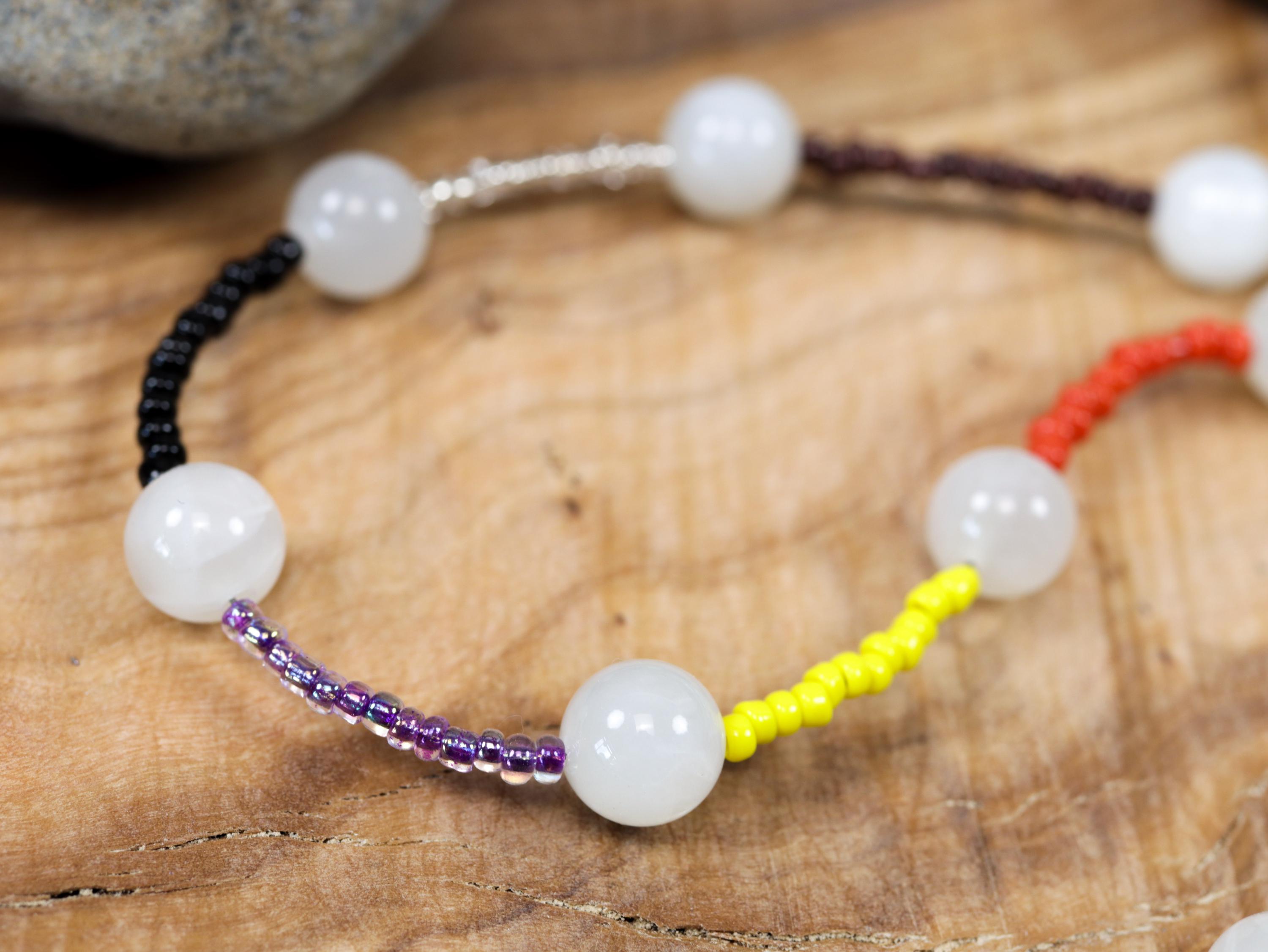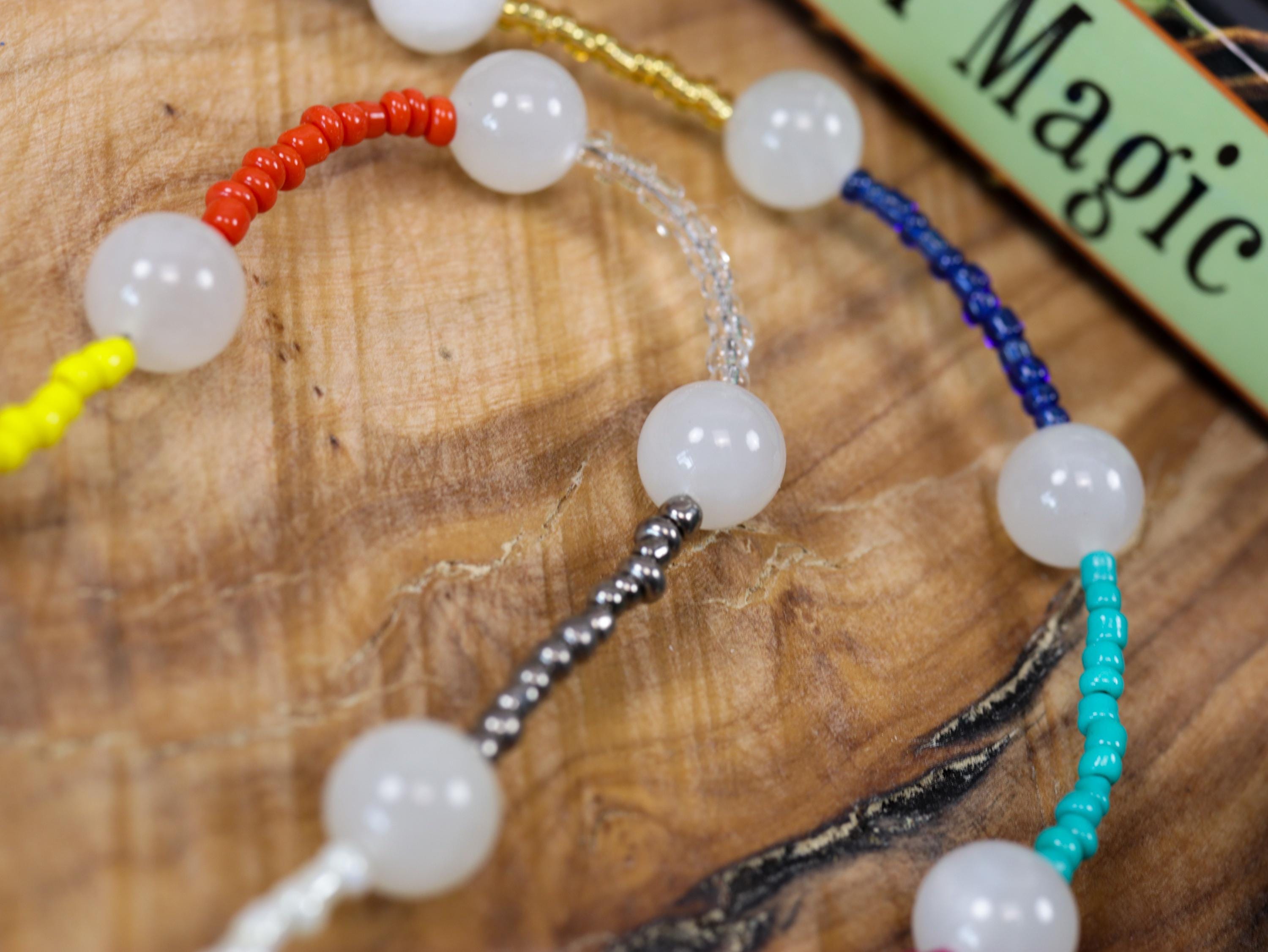 🔮 Sacred Symbolism of 13 Moons – This rosary features 13 glowing Rainbow Moonstone beads, each separated by seed beads representing the 13 Full Moons of a magical year. Every color corresponds to a moon and seasonal energy: