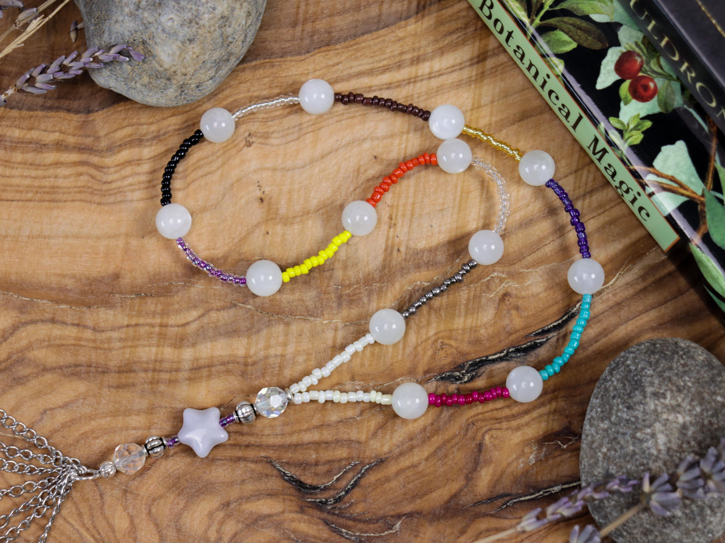 Handcrafted 13 Moons Rosary – Rainbow Moonstone, Lunar Magic, Witchcraft Ritual Tool. Perfect for lunar rituals, meditation, witchcraft, and goddess devotion. A magical gift for moon witches.