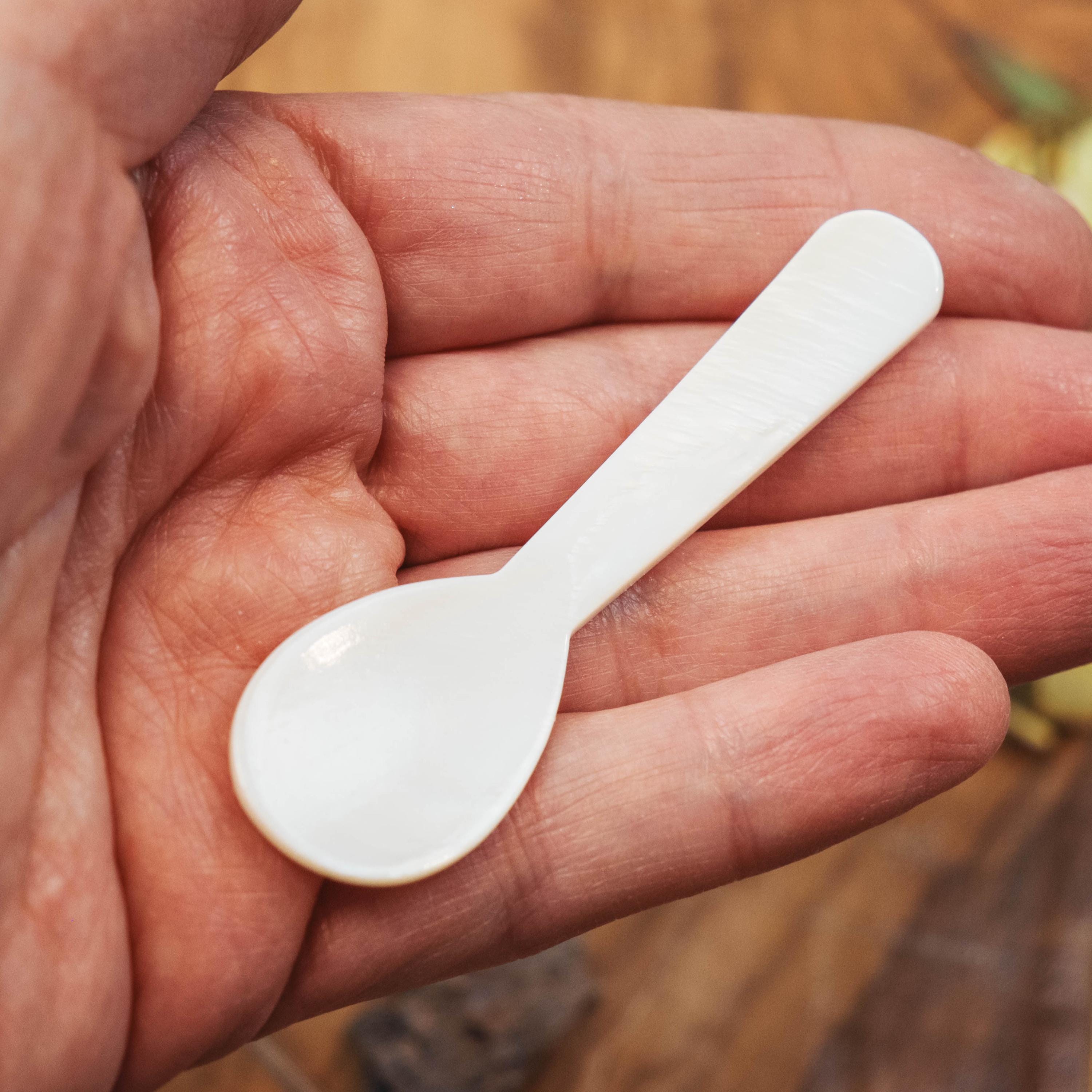The Spoon: The shimmering Mother of Pearl spoon reflects Selene’s silvery glow, carrying the power of the ocean tides she governs. It is both a tool and a blessing, meant to serve salt or sacred herbs with lunar grace, as if touched by the Moon’s hand itself.